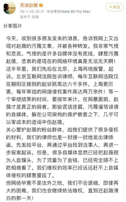 赵健在声明里不仅否认了谣言,更曝光了背后的操纵者——一个为了涨粉和拓展业务的律师,还有几十个跟风的自媒体账号。
